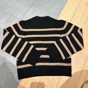 Elegant striped sweater by La Ligne. Features bold black and tan stripes. Perfect for versatile styling. In perfect condition, 100% merino wool. Cutest sweater that can be worn for any occasion!