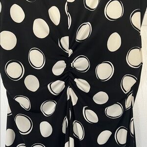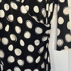 Elegant dress featuring a bold dot pattern. Perfect for versatile styling.