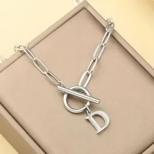 Elegant silver necklace featuring a "D" initial pendant. Perfect for adding a personal touch to any outfit.