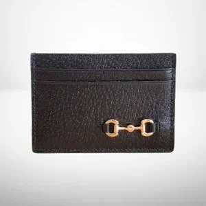 A symbol from the House's equestrian heritage elevates the black leather card case. Appearing as gold-toned hardware, the Horsebit is not only a reference to over ten decades of history, but a symbol of ever-evolving design.