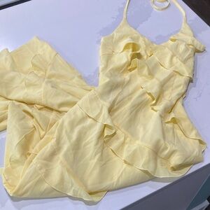 Yellow Ruffled Halter Dress