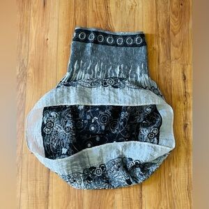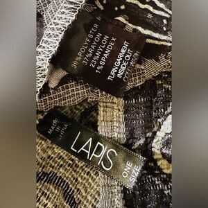 (#157)-Chic strapless dress or skirt by Lapis. Features a stylish gray and black pattern. Perfect for any event. Excellent condition.