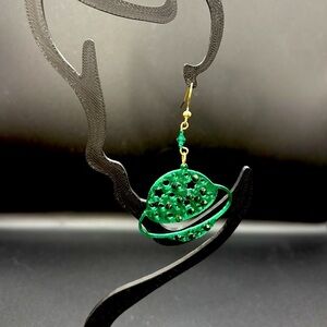 Explore the universe with these stunning handmade green planet earrings. Perfect for adding a touch of celestial charm to any outfit.