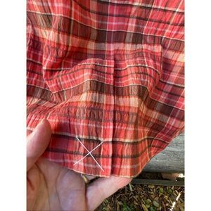 Talbots size 14WP plaid 3/4 sleeves crinkled plaid jacket.button front and two open pockets. Button details on sleeves. Fully lined. Never worn. Still has back slit stitched in back. 99% cotton and 1% Elastane.