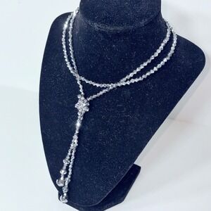 Sparkling Crystal Lariat Necklace Y Drop Silver Tone Faceted Beads