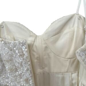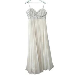 rachel gilbert gown, silk wedding dress, sequin bridal gown, ivory formal dress, strapless wedding gown, designer bridal dress, chiffon wedding dress, elegant bridal fashion, size 6 wedding dress, luxury evening gown