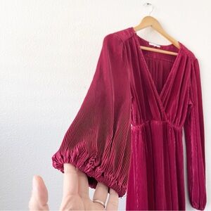 Baltic Born Venus Pleated Evening Long Sleeve Maxi Dress in Burgundy