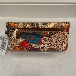 This is a brand new with tags Brahmin ady wallet Melbourne marketplace and it’s genuine leather. It is super colorful and has so many card slots and pockets inside for all of your things. It measures 7.5” x 4”.