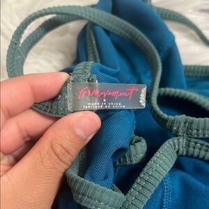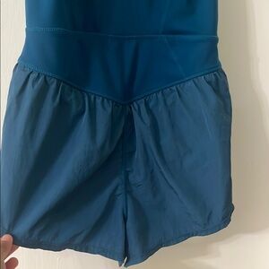 This stylish athletic romper features a vibrant blue color, perfect for active days. Designed for comfort and movement.