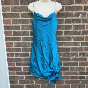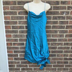 NWT Cinq A Sept Size 8 Pagoda Blue Side Tie Satin Mini Dress Cocktail Ryder