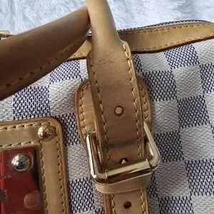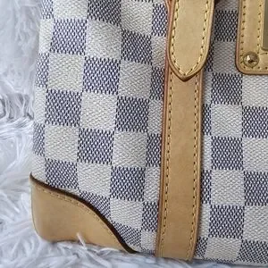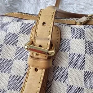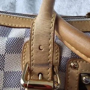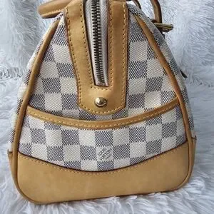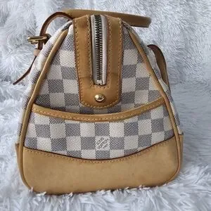 Elevate your style with this elegant checkered handbag. Featuring a sophisticated tan and cream design, this bag is perfect for any occasion.