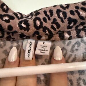 Chic leopard print pajama set. Short-sleeve top with matching shorts. Soft and comfortable fabric.