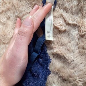 Experience comfort and style with this elegant navy lace bra. Perfect for everyday wear, it combines delicate lace with a supportive fit.
