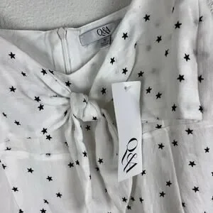 Q&A White Star Print Tie Front Tiered Mini Dress Size M NWT