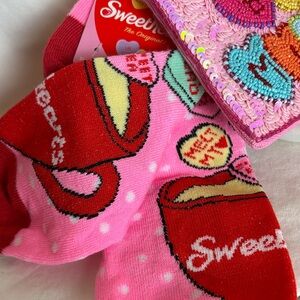 Sweethearts Ankle Socks & Be Mine Heart Beaded Pouch with Pink Sequins New
