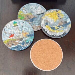 • Set of 4 coordinating lighthouse-themed Diamond Art coasters