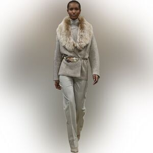 Ralph Lauren Collection Pre-Fall 2014 Lamb Shearling Fur Collar Cardigan
