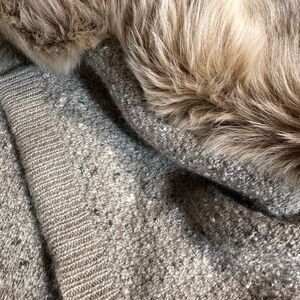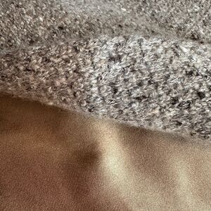 The sweater, a rich Italian blend of silk, angora, and cashmere, is flecked like starlight across a dusk-colored sky.