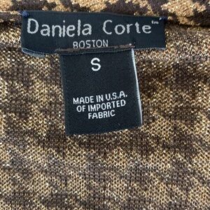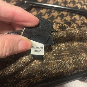 From designer Daniela Corte in Boston come this gorgeous brown and gold houndstooth long sleeve wrap dress. Fabulous.
