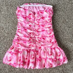 Hello Molly Pink Floral Strapless Mini Dress Size Medium