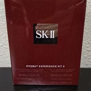 SK-II Pitera Experience Kit 2 with facial treatment products. Elegant red packaging.