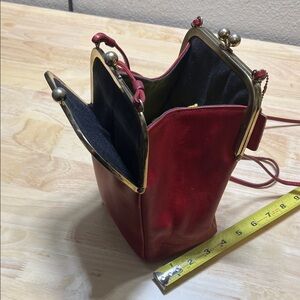 Elevate your style with this chic burgundy leather crossbody bag. Its sleek design and rich color make it a perfect accessory for any outfit.