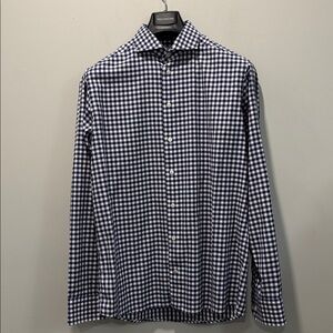 Eton Navy White Gingham Dress Shirt 16.5 Slim Fit Cotton Luxury Check