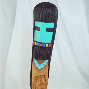 Vintage Hand-Carved Wood Long Hair Hopi Kachina Doll 1995 11" Tall Signed dated