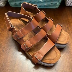 Step out in style with these chic tan wedge sandals. Perfect for any casual outing, these sandals offer both comfort and elegance.
