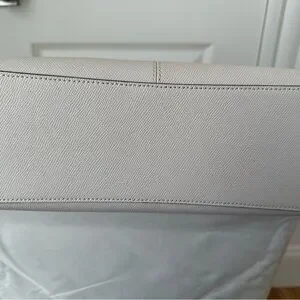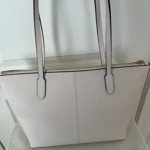 Stylish cream shoulder bag by Coach. Features sleek black accents. Perfect for everyday use.