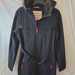 Hunter Crown 2.0 Long Women's Jacket Coat Waterproof Hooded W/ Belt Black L NWT
