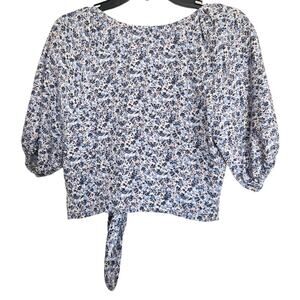 Abercrombie & Fitch Linen Blend Floral Tie Front Crop Blouse Size S