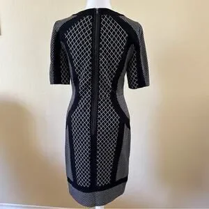 BCBGMaxAzria Women Black & Gray Geometric Pattern Sheath Dress Size M. Gently used in excellent condition. Fully lined, zipper back closure. Stylish unique black and gray geometric pattern. Perfect for a day at the office or a night out, this dress is sure to turn heads.