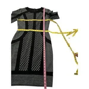 BCBGMaxAzria Women Black & Gray Geometric Pattern Sheath Dress Size M