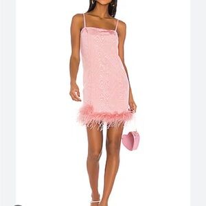 Stylish pink dress with feather trim. Perfect for a night out. Worn once in excellent condition .