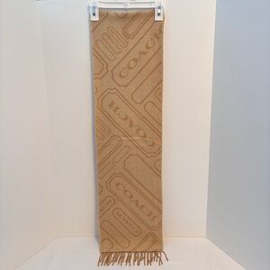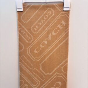 Coach Logo Monogram Tan Cream Reversible Wool Cashmere Muffler Scarf