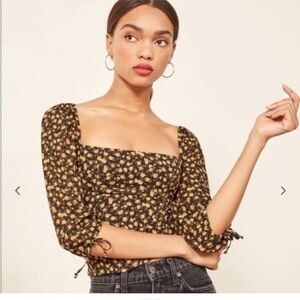 Reformation Grove top black floral blouse size 2. The price is firm.