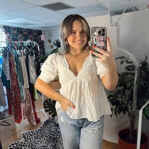 Forever That Girl V-Neck Short Sleeve Blouse White Size Medium