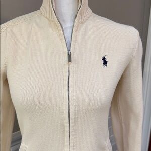 Ralph Lauren. Chic beige cardigan with zip closure. Features signature Ralph Lauren emblem. Ideal for casual wear. 💯 cotton