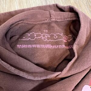 Authentic SP5DER Angel Number 555 graphic set — includes brown pullover hoodie, matching joggers, and a pink SP5DER spider web beanie. Collector's edition.