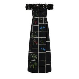 The Black Fresher Buds Suze Dress is an exquisite style that is perfect for elevated occasions. With an off-the-shoulder neckline with magnificently textured gathering. a slim column silhouette. and a Victorian-inspired fabric. this look is graceful and elegant while still being modern. Pair with heels and a gold necklace or simple ballet flats for a feminine look that will be the belle of the ball.