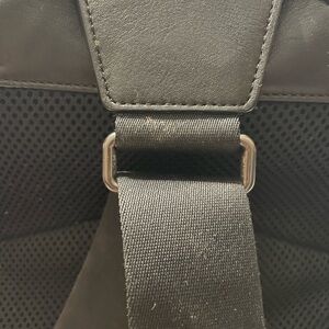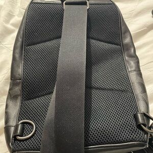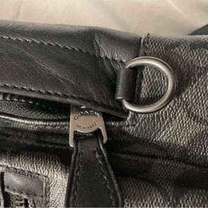 Stylish Coach backpack with black and blue stripes. Perfect for daily use.