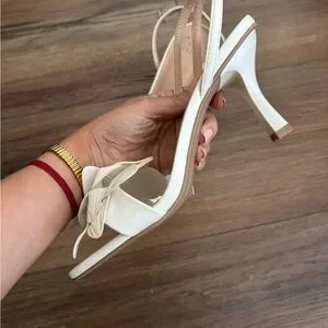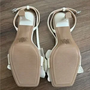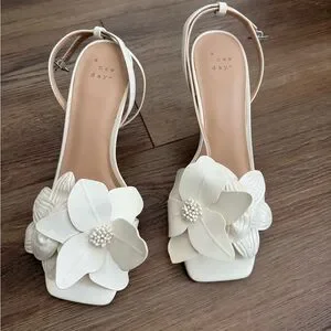 Elegant cream heels with floral accents. Perfect for stylish occasions.