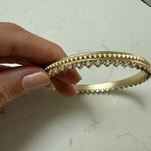 This stunning bangle features a sophisticated blend of gold and CZ tones, perfect for adding a touch of elegance to any outfit. Its intricate design makes it a standout piece in any jewelry collection. Good quality bangle bracelet. Never worn, gifted and lived in my jewelry box.