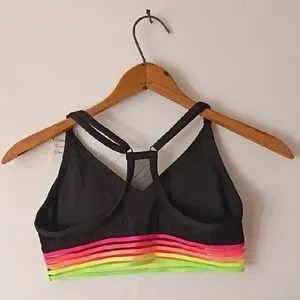 Victoria's Secret PINK black sports bra featuring a rainbow striped mesh small