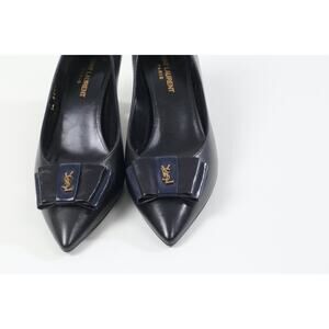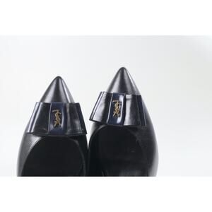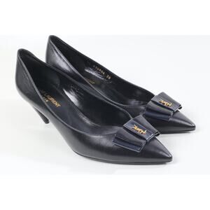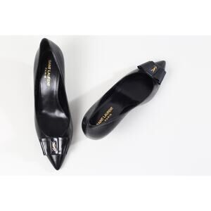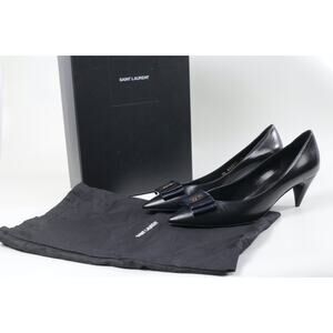 Saint Laurent YSL Anais Black Leather Bow Pumps Heels Women's EU 38 Designer