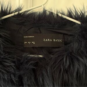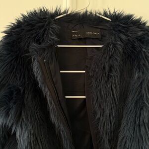 Elegant navy faux fur coat. Ideal for a sophisticated style. Perfect for ski trips and winter travel.