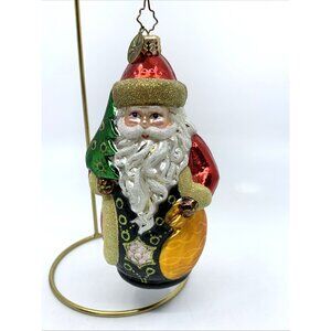 Christopher Radko Blown Glass Ornament European St Nicolas w/Gold Gift Bag Santa