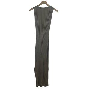 Description : Very stretchy. Bodycon rib. Sleeveless. Greige / taupe. Midi.