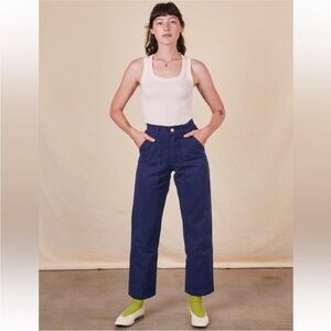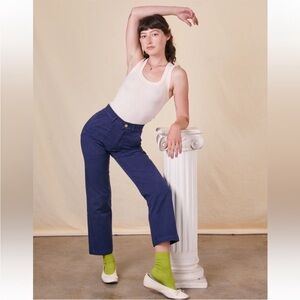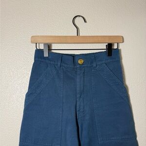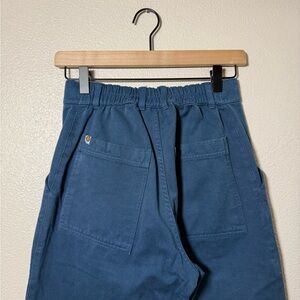 Stylish blue pants. High-waisted design. Perfect for casual wear.
